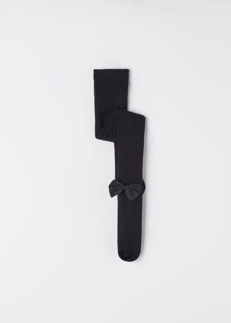 Хлопковые Колготки в Рубчик с Бантиком для Девочек