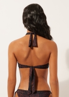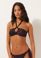 Бандо-топ для бикини с мягкими чашечками и перекрещивающимися завязками на шее. Леопардовый принт в темно-коричневых и чёрных тонах создаёт дерзкий и утончённый стиль. Боковые вставки обеспечивают хорошую поддержку. Завязка на спине.