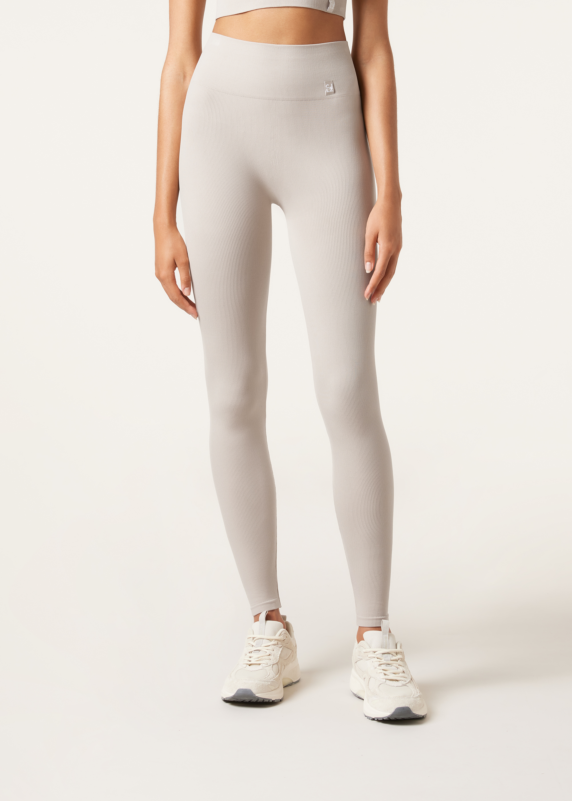 Бесшовные спортивные легинсы в мелкий рубчик. Удобная модель из очень мягкой и плотной ткани. Легинсы в рубчик с высоким комфортным поясом, обеспечивающим оптимальную поддержку и безупречную посадку, идеально подходят для спортивных занятий.