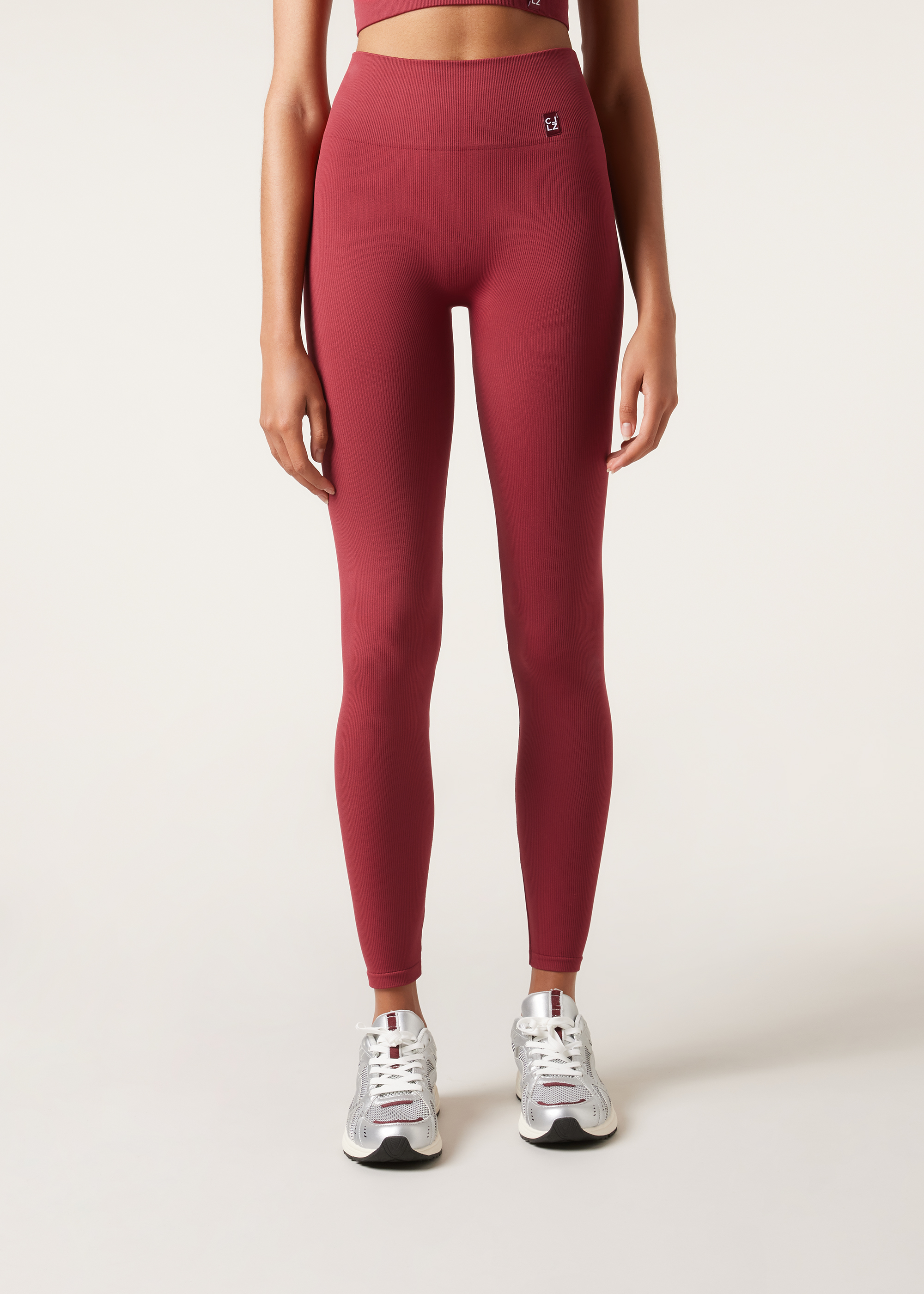 Бесшовные спортивные легинсы в мелкий рубчик. Удобная модель из очень мягкой и плотной ткани. Легинсы в рубчик с высоким комфортным поясом, обеспечивающим оптимальную поддержку и безупречную посадку, идеально подходят для спортивных занятий.