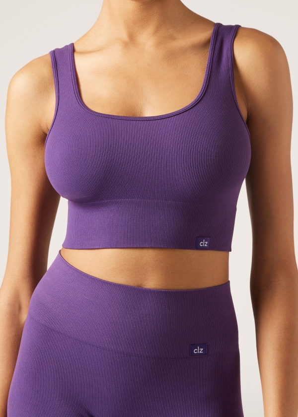 Спортивный бесшовный бюстгальтер из мягкого трикотажа в мелкий рубчик. Удобная модель с квадратным вырезом горловины и широкими бретелями. Для тренировок можно сочетать со спортивными легинсами MIP088.