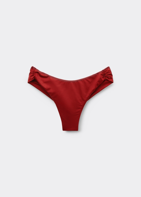 Бразильские плавки с полной подкладкой и сборкой сзади. Блестящая ткань с сатиновым эффектом особенно мягкая. Немного округлый передний пояс позволяет носить их как классическим образом, так и с более высоким вырезом бедра — в зависимости от вашей фигуры.