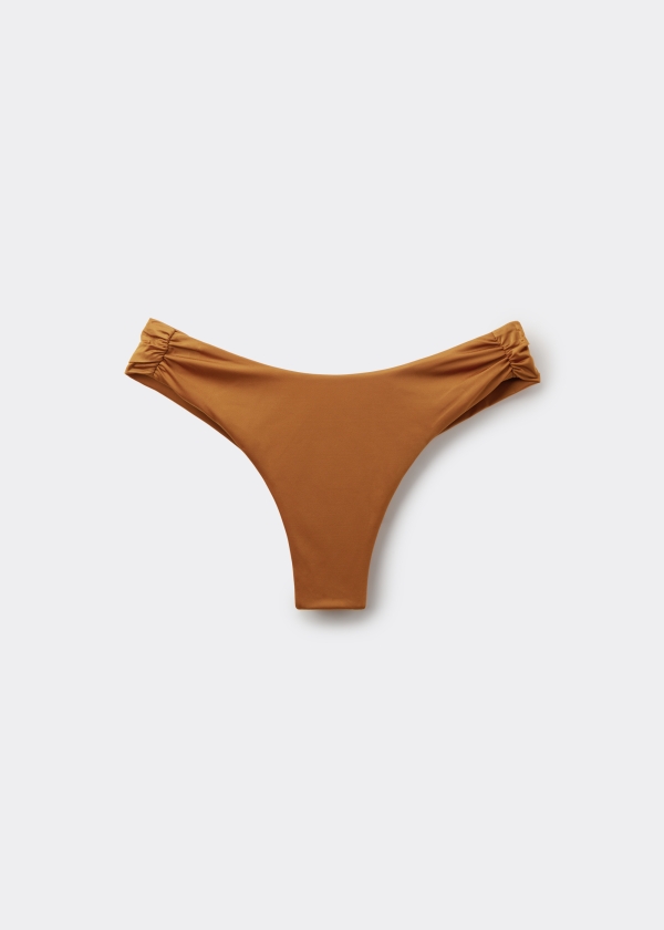 Бразильские плавки с полной подкладкой и сборкой сзади. Блестящая ткань с сатиновым эффектом особенно мягкая. Немного округлый передний пояс позволяет носить их как классическим образом, так и с более высоким вырезом бедра — в зависимости от вашей фигуры.
