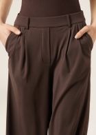 Свободные брюки в минималистичном стиле — для максимального комфорта. Благодаря высокотехнологичной ткани, мягкой, легкой и очень эластичной, эта модель не мнется и сохраняет неизменно безупречный вид. Эластичный пояс с внутренней кулиской обеспечивает удобную посадку по фигуре, а боковые карманы вносят нотки практичности и стиля. Дизайн дополняют клапан-обманка, шлевки и прорезные карманы сзади. Эти универсальные, комфортные и стильные брюки — незаменимая одежда как для офиса, так и для путешествий и досуга.