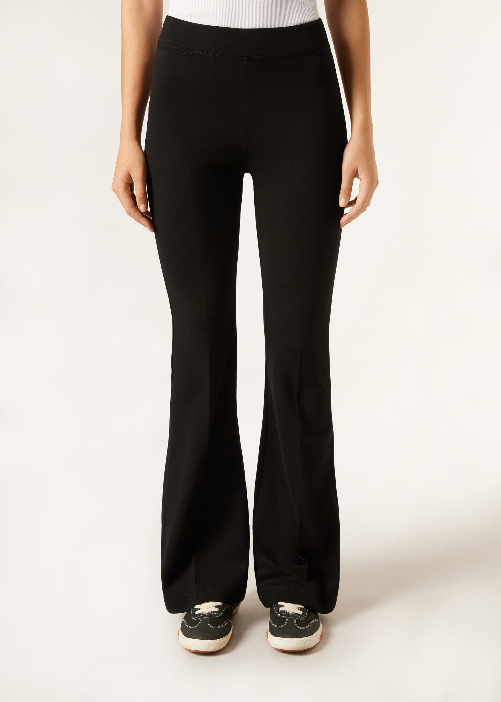 Изысканные брюки клеш из мягкого трикотажа Milano — сочетание элегантности и непревзойденного комфорта. Удобный эластичный пояс на талии обеспечивает поддержку и ощущение комфорта на протяжении всего дня. Идеальная модель для универсального и актуального образа.