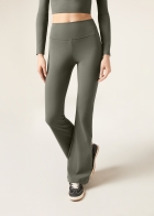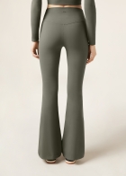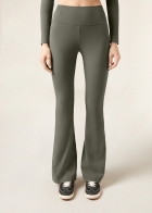 Брюки клеш из высококачественной итальянской ткани: благодаря особой эластичности материала изделие мягко облегает фигуру. Высокий пояс без резинки обеспечивает удобную посадку — идеальная модель для тех моментов, когда можно полностью расслабиться.