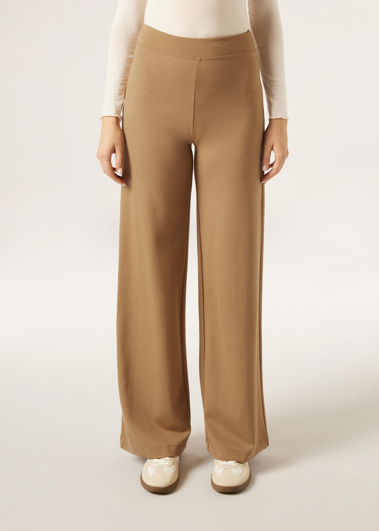 Изысканные брюки палаццо из мягкого трикотажа Milano — сочетание элегантности и непревзойденного комфорта. Исключительно удобный эластичный пояс мягко прилегает к телу, не сдавливая, и дарит свободу движений и ощущение комфорта на протяжении всего дня. Идеальные брюки для любого случая.