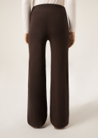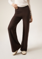 Женские брюки палаццо в рубчик, выполненные из модала с добавлением кашемира. Высокий комфортный пояс без резинки. Плотная, мягкая и воздухопроницаемая ткань с ворсом на изнанке дарит приятное ощущение тепла. Стильная и комфортная одежда для холодной погоды.
