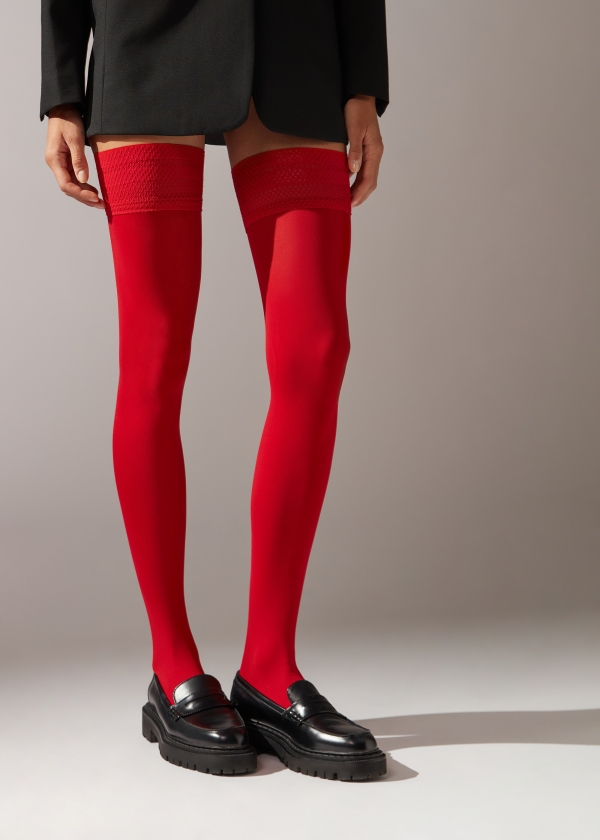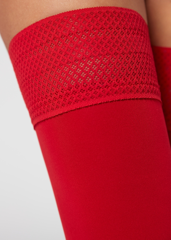 Женские плотные чулки с эффектом Soft Touch. Очень комфортная и мягкая модель. Плотность 50 ден. Плоская кайма с ажурным узором и силиконовым покрытием позволяет носить эти чулки даже под самой облегающей одеждой.