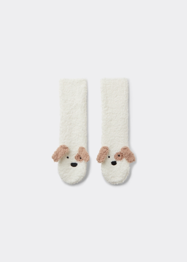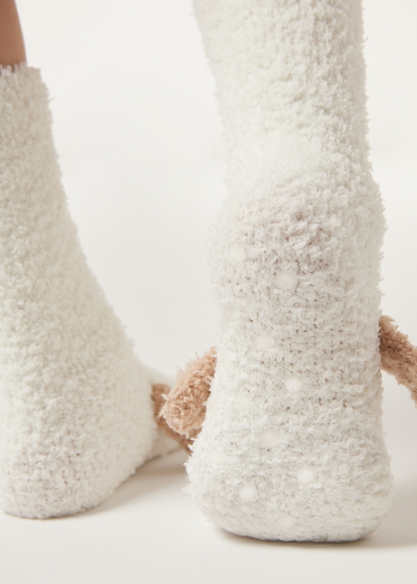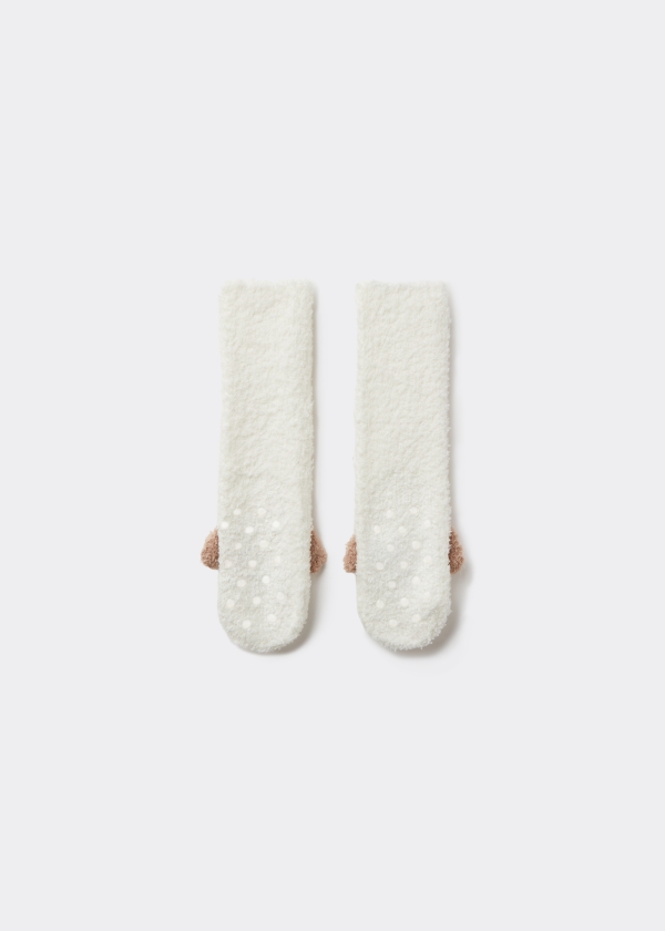 Хлопковые нескользящие носки для детей. Очаровательная модель с очень мягкой фактурой и забавной аппликацией. Противоскользящая подошва обеспечивает устойчивость и хорошее сцепление — идеальный вариант удобной домашней обуви.