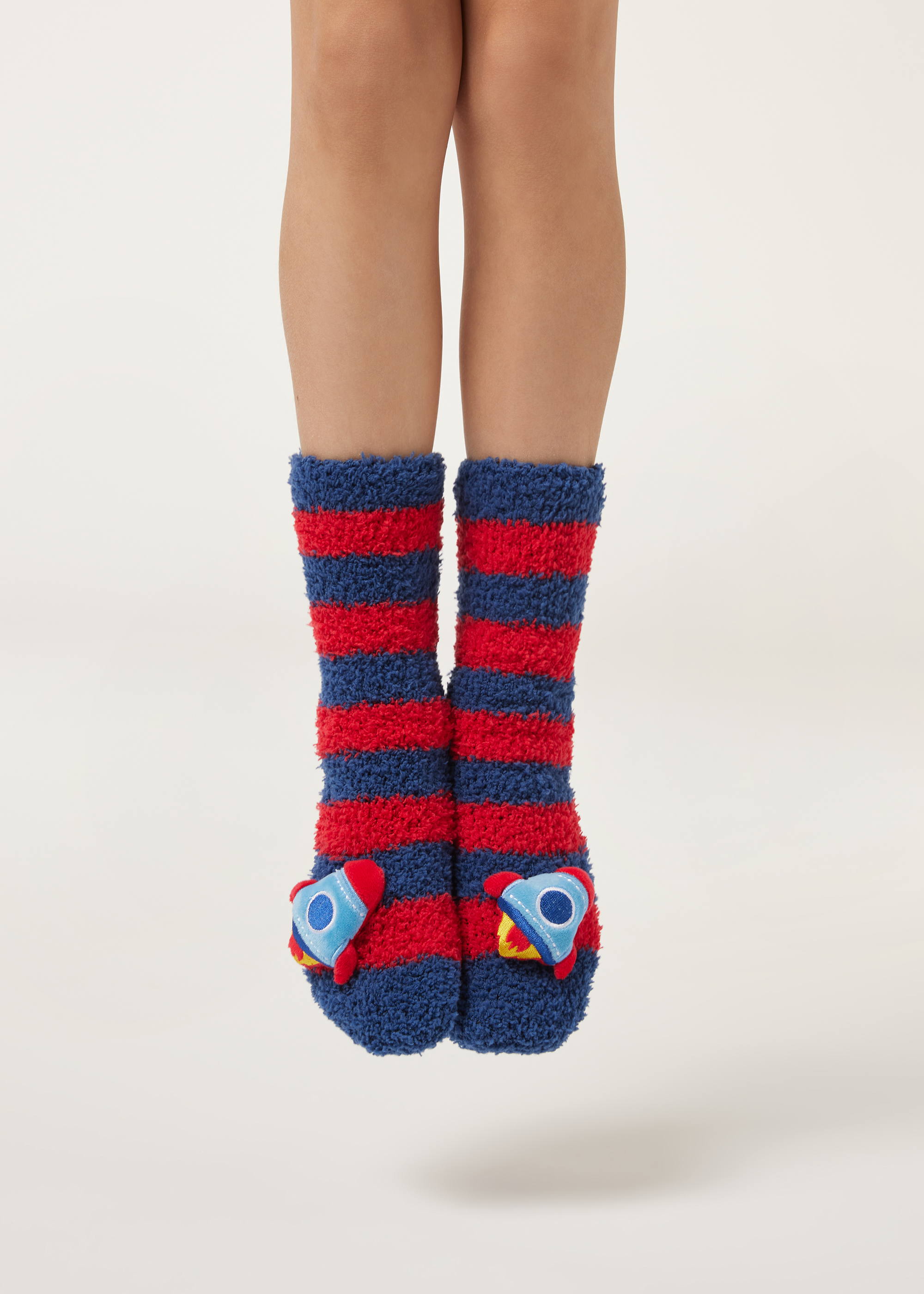 Хлопковые нескользящие носки для детей. Очаровательная модель с очень мягкой фактурой и забавной аппликацией. Противоскользящая подошва обеспечивает устойчивость и хорошее сцепление — идеальный вариант удобной домашней обуви.