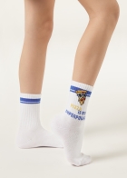Легкие и приятные к телу детские носки из мягкого хлопка. Модель с эластичным бортиком и удобным мыском украшена симпатичными разноцветными рисунками.