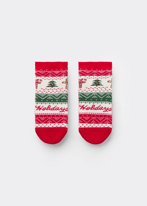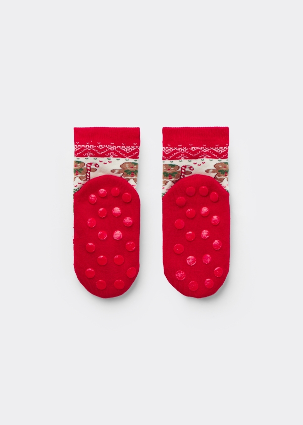 Детские хлопковые нескользящие носки с рождественским рисунком. Нескользящая подошва обеспечивает устойчивость и сцепление, идеально подходит для домашнего комфорта. Удобные и подходящие для всей семьи.