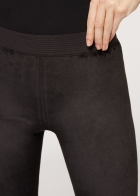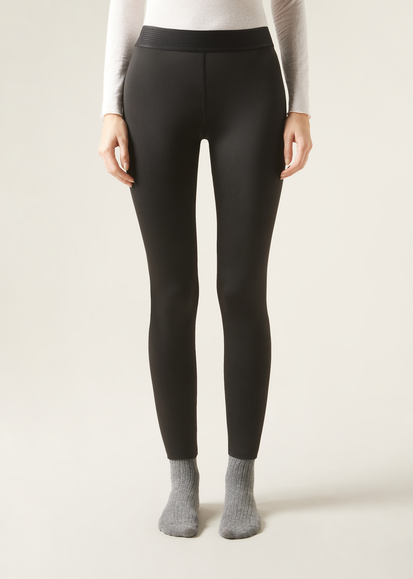 Термолегинсы выполнены из двусторонней ткани. Гладкая однородная текстура с одной стороны, необыкновенно мягкая и слегка ворсистая – с другой: использование двусторонней ткани позволяет носить это изделие с обеих сторон. Комфортный пояс на талии.