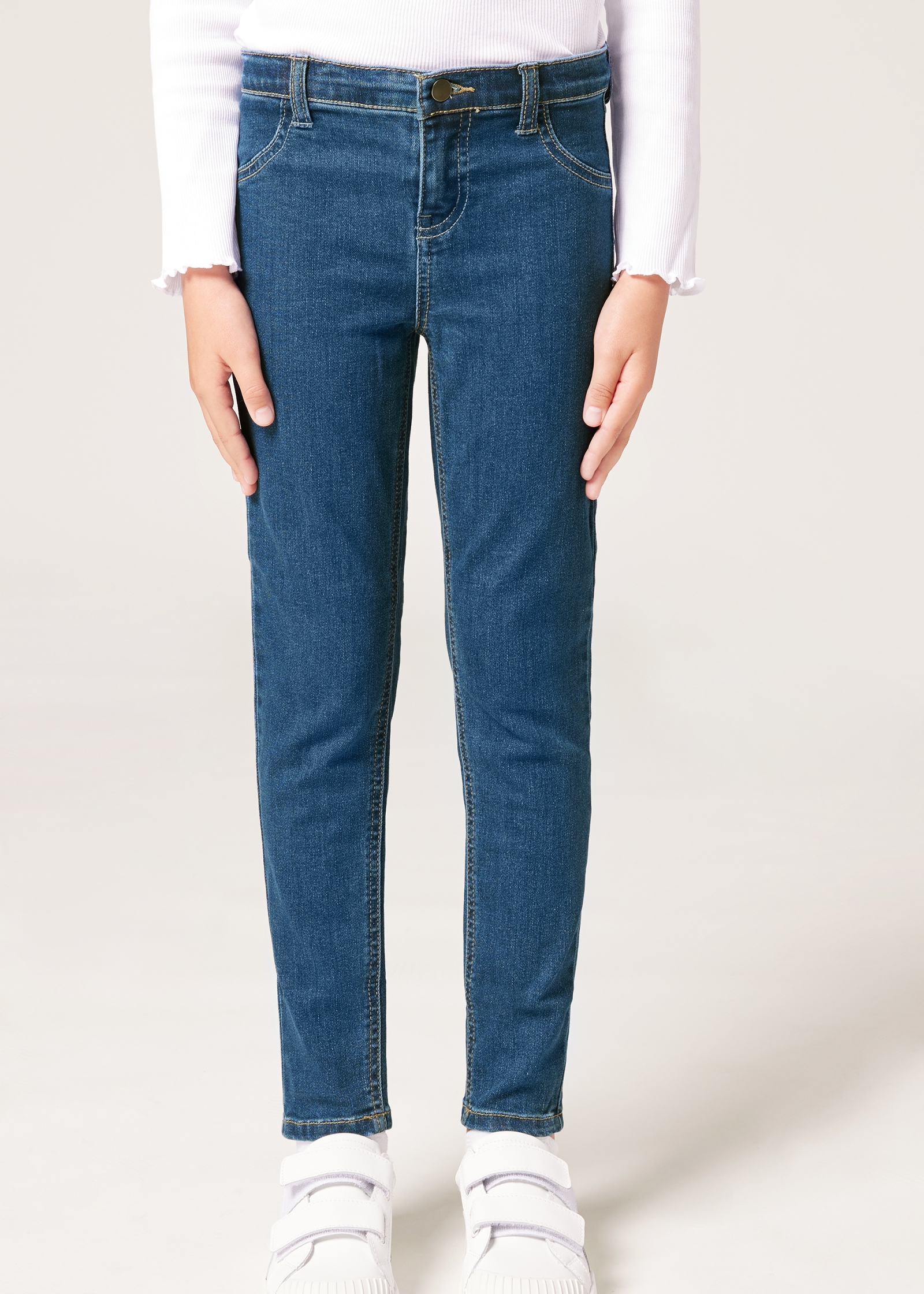 Джинсы скинни для девочек, выполненные из очень мягкого и эластичного денима. Регулируемый пояс с резинкой внутри. Имитация карманов спереди. Карманы сзади.