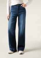 Джинсы палаццо с широкими, свободно струящимися штанинами для стройного и элегантного силуэта. Оснащены шлёвками для ремня, застёжкой на пуговицу и молнию. Настоящие передние и задние карманы сочетают практичность и стиль.