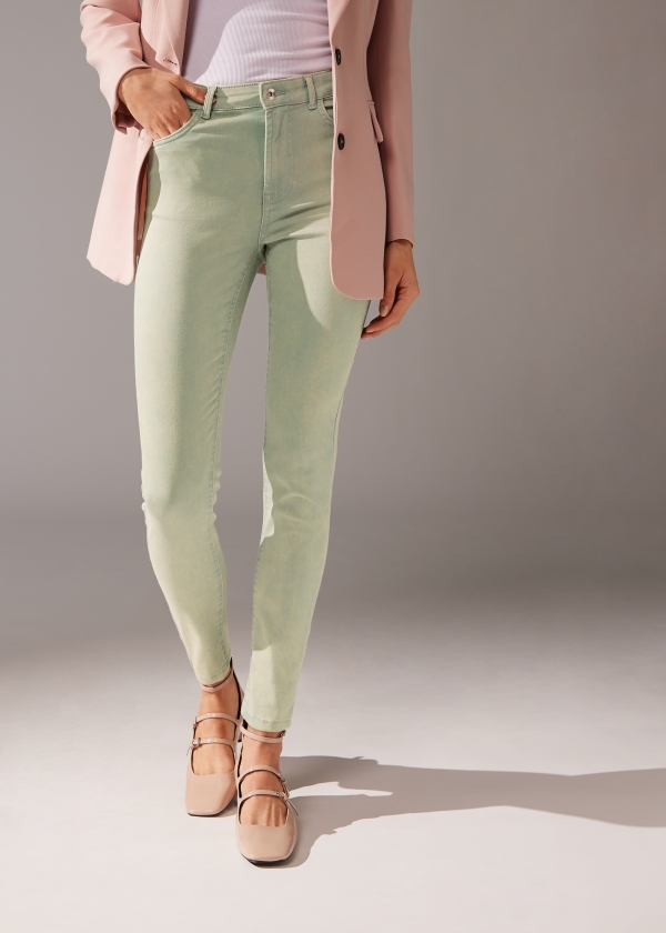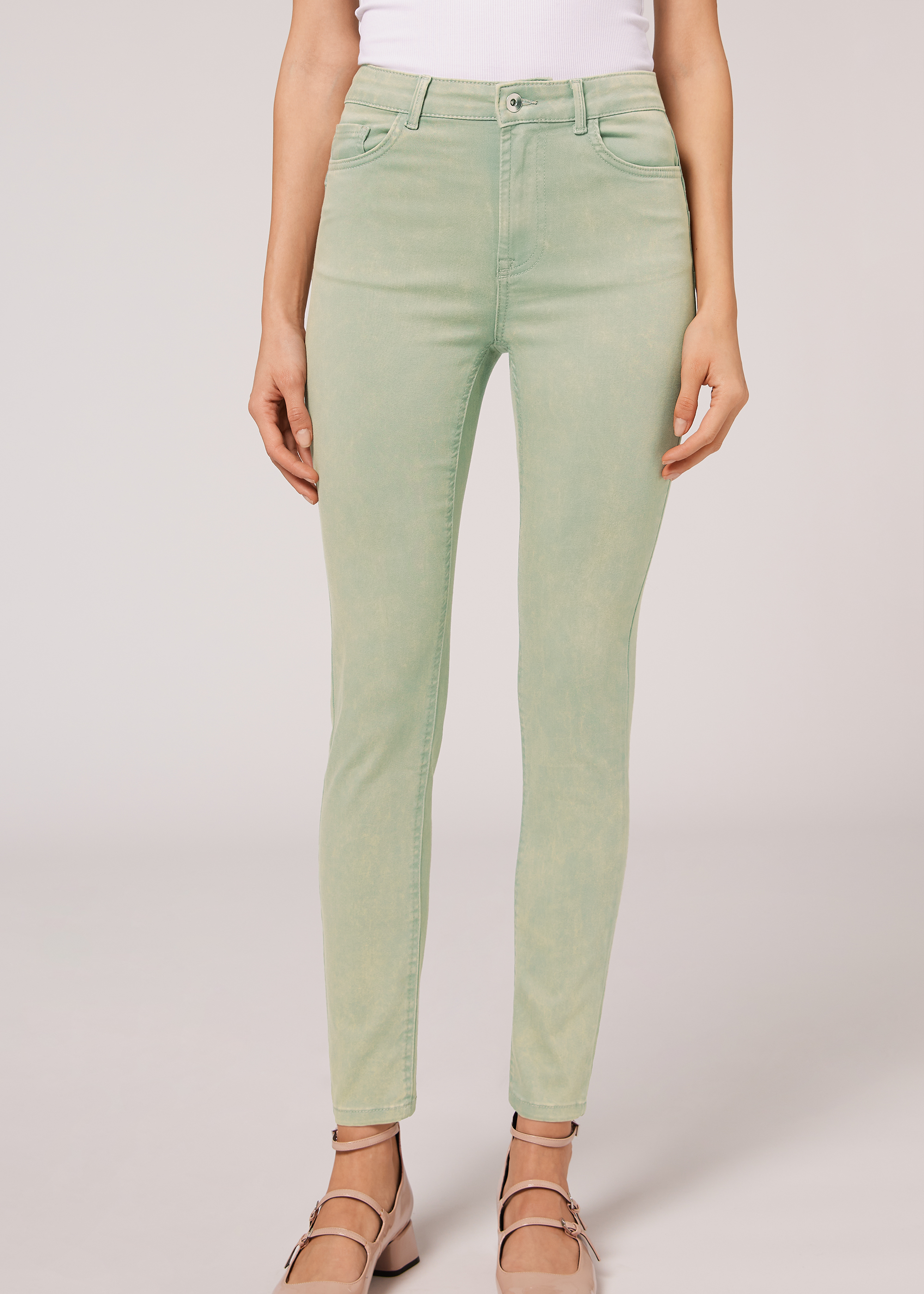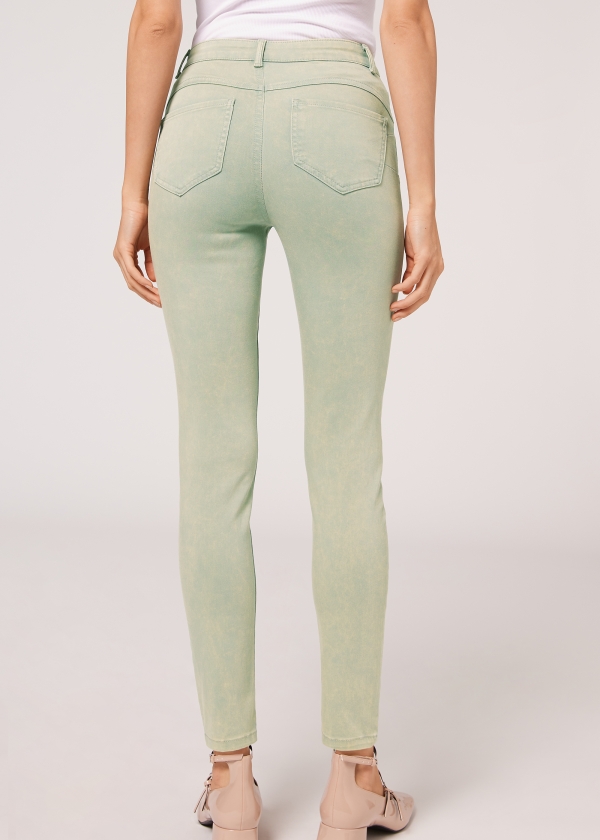 Джинсы скинни с эффектом пуш-ап и высокой посадкой. Застегиваются на молнию и пуговицу. Спереди карманы с кармашком для монет. Практичные карманы сзади. Благодаря очень мягкой джинсовой ткани изделие отлично сидит на фигуре.