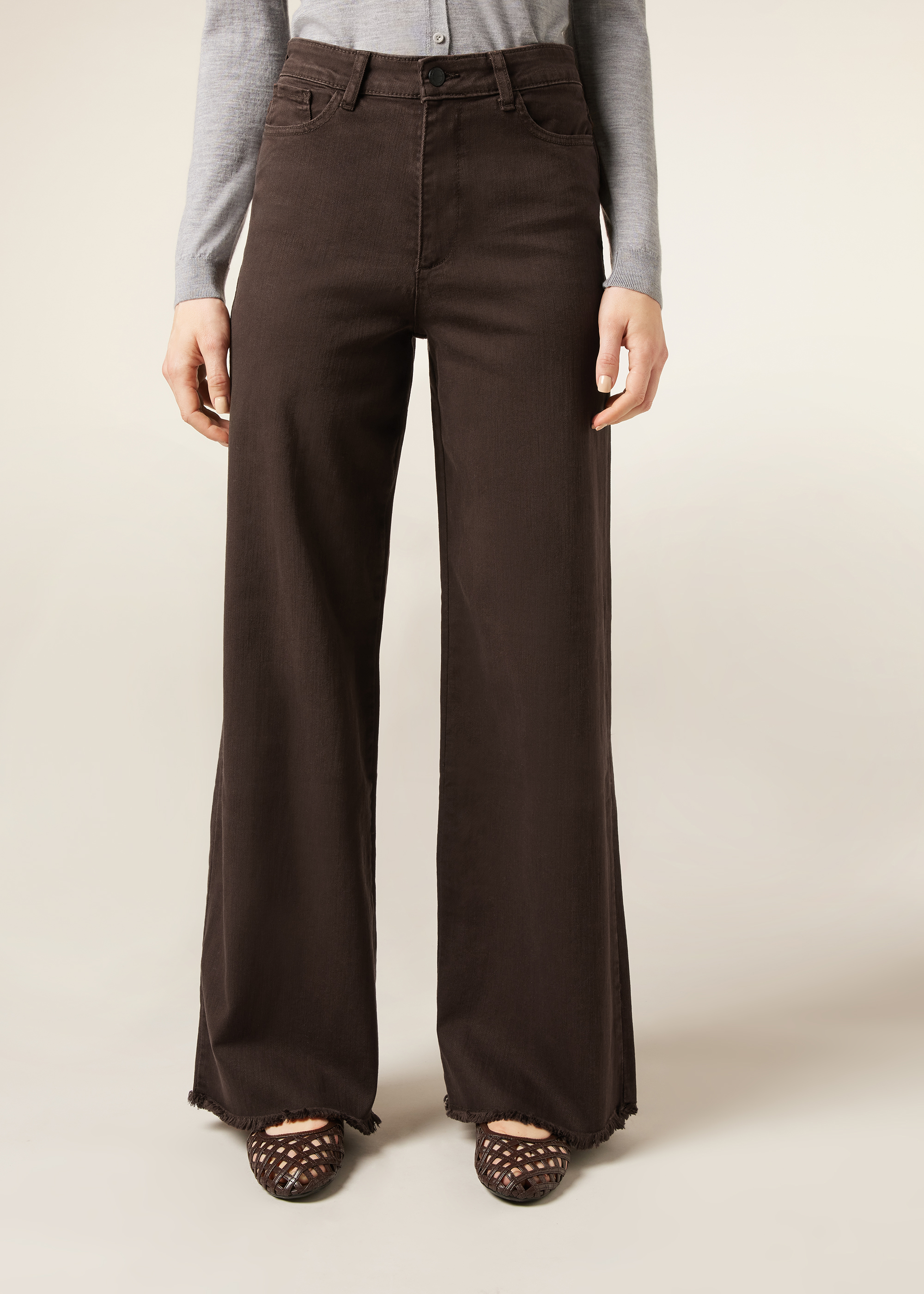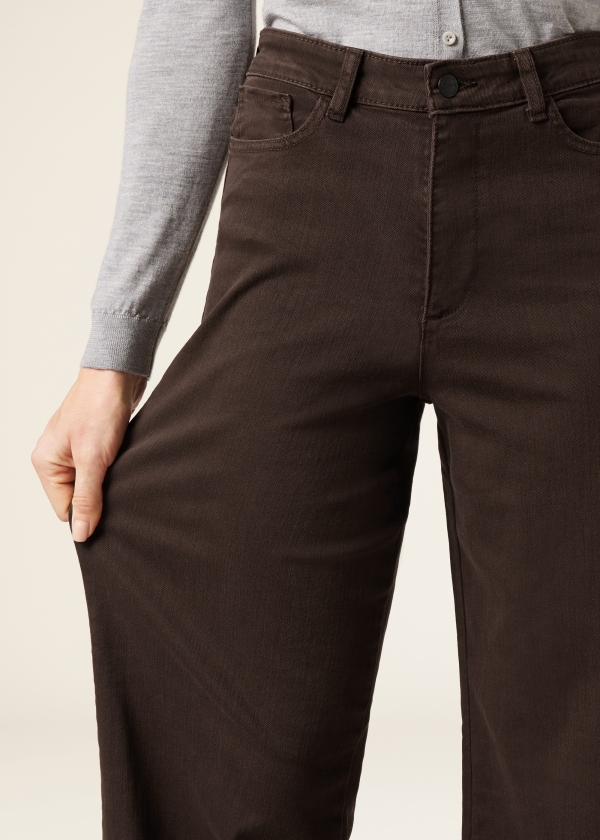 Джинсы широкого кроя из ультра-эластичной ткани, пять карманов, молния и пуговица. Оснащены шлевками для ремня и функциональными передними и задними карманами. Эластичный пояс обеспечивает идеальную посадку и оптимальный комфорт, делая эти джинсы чрезвычайно удобными и идеальными для повседневного и модного образа.