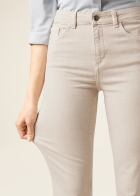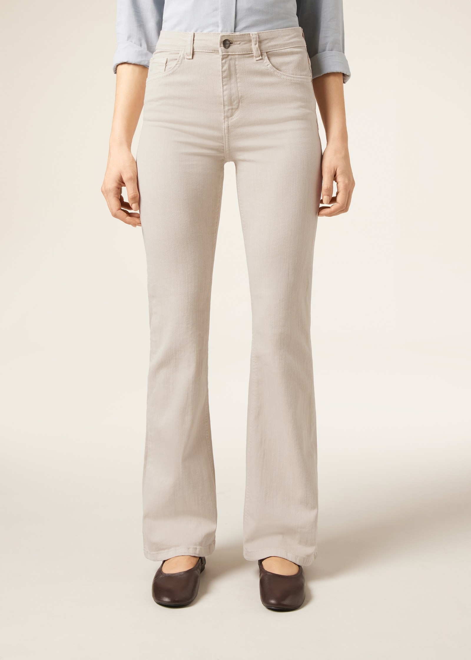 Женские джинсы клеш с пятью карманами, шлевками на поясе, застежкой-молнией, пуговицей и заклепками, украшенными логотипом Clz. Стильные и удобные джинсы клеш из очень эластичной ткани обеспечивают исключительный комфорт и идеальную посадку.
