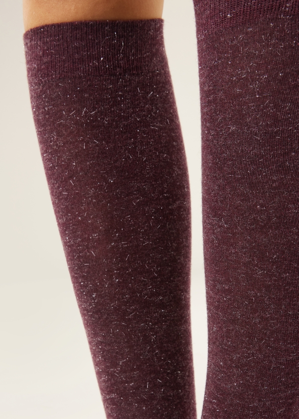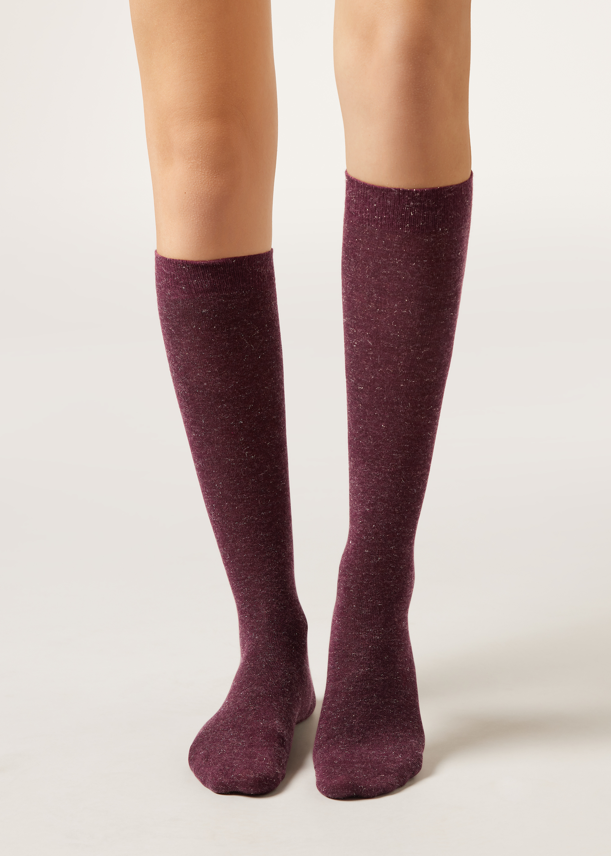 Женские гольфы из пряжи с добавлением кашемира и блестками позволят вам сочетать в одном образе элегантность и несравненный комфорт. Они подарят вам ощущение роскоши и тепла, чтобы вы выглядели блистательно даже в самую холодную погоду.