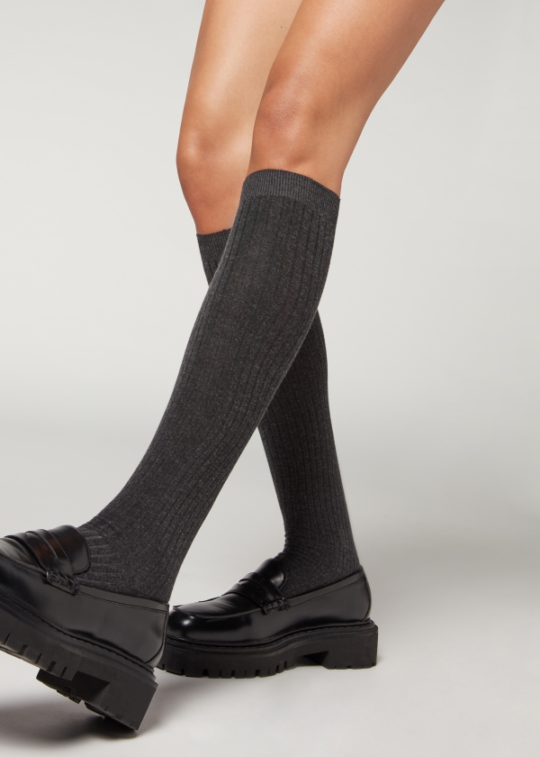 Женские гольфы из мягкого кашемира с узором в рубчик. Теплая и комфортная модель.