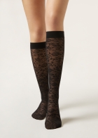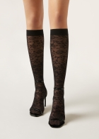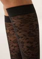Женские гольфы из тюля с кружевным цветочным узором. Плотность 50 ден. Гладкий бортик.