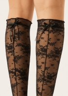 Женские кружевные гольфы со швом сзади. Мягкий волнистый бортик дополняет атласный бантик. Изысканная и женственная модель с намеком на высокую моду.
