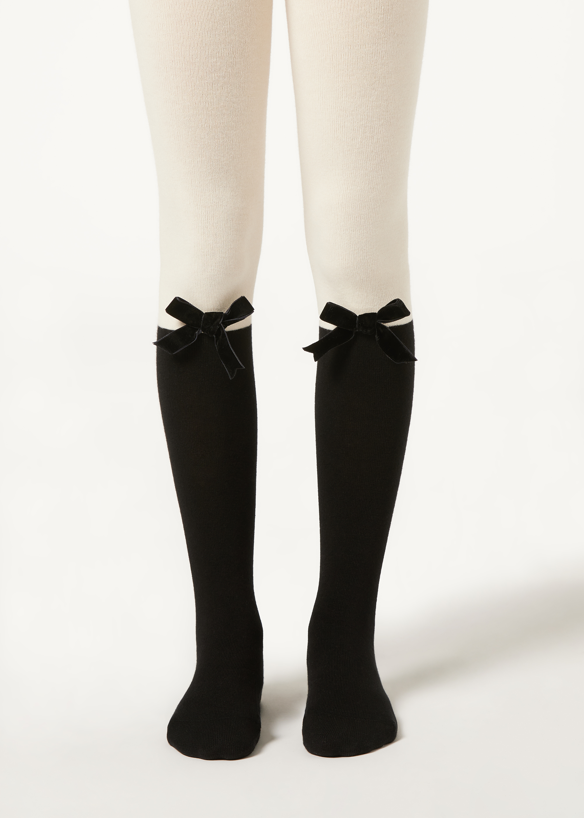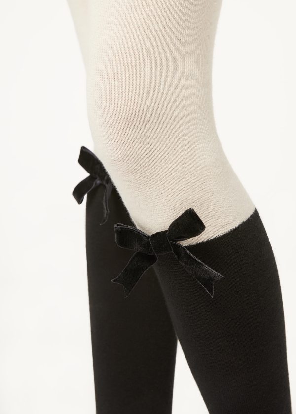 Хлопковые колготки с имитацией гольфин и бархатным бантиком для девочек. Эта мягкая и теплая модель в романтичном стиле идеально подходит для завершения утонченного образа.