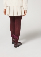Колготки из мягкого хлопка в рубчик для девочек. Элегантный бантик в тон.