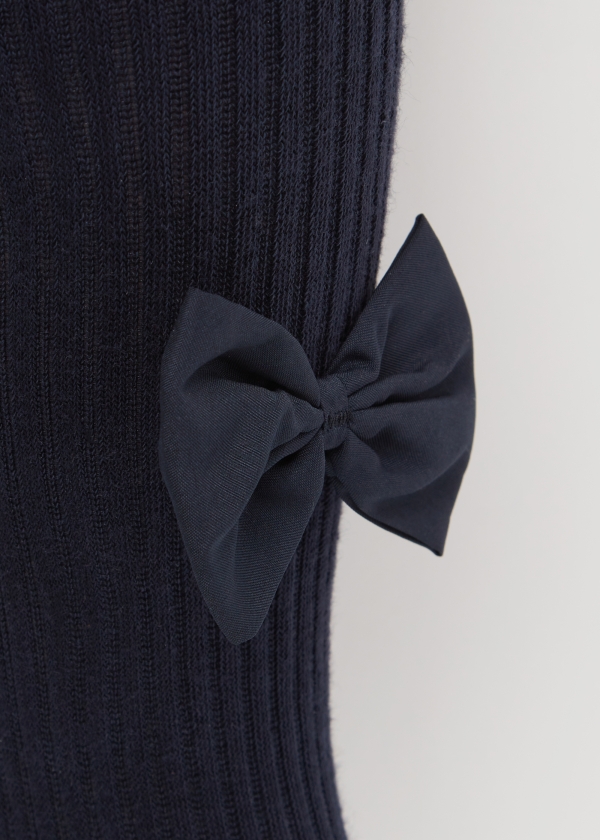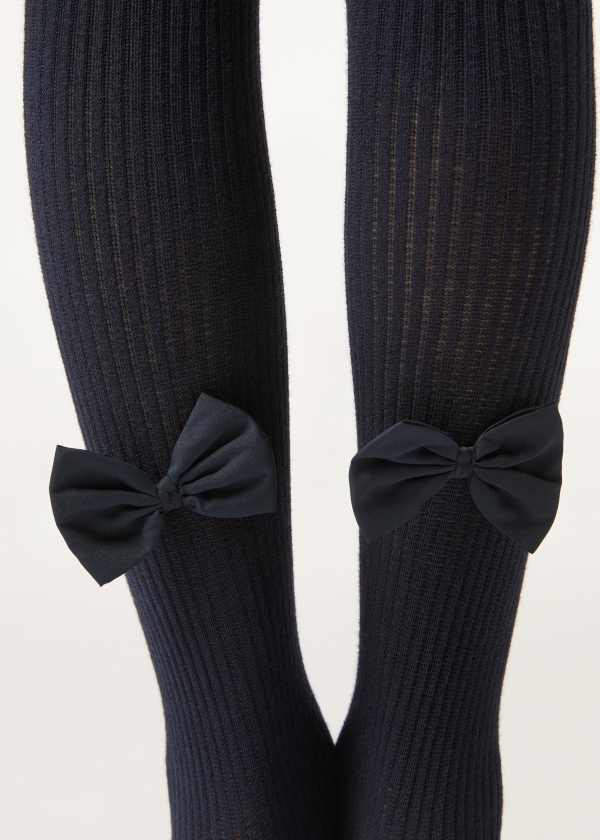 Колготки из мягкого хлопка в рубчик для девочек. Элегантный бантик в тон.