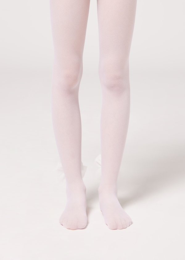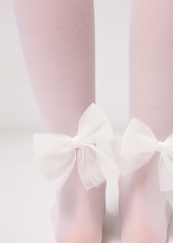 Колготки из тюля для девочек. Плотность 30 ден. Аппликация в виде элегантного бантика.