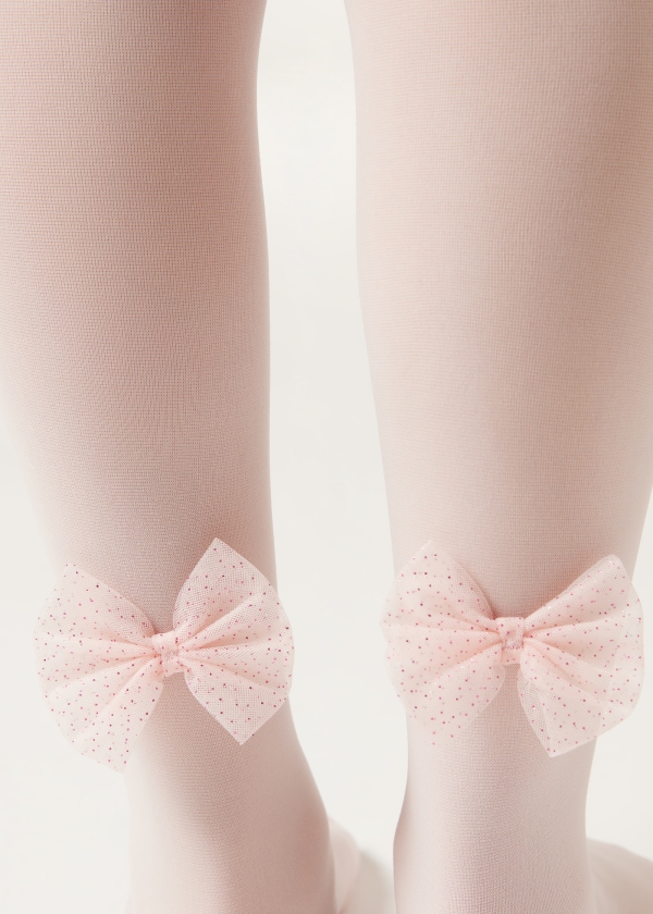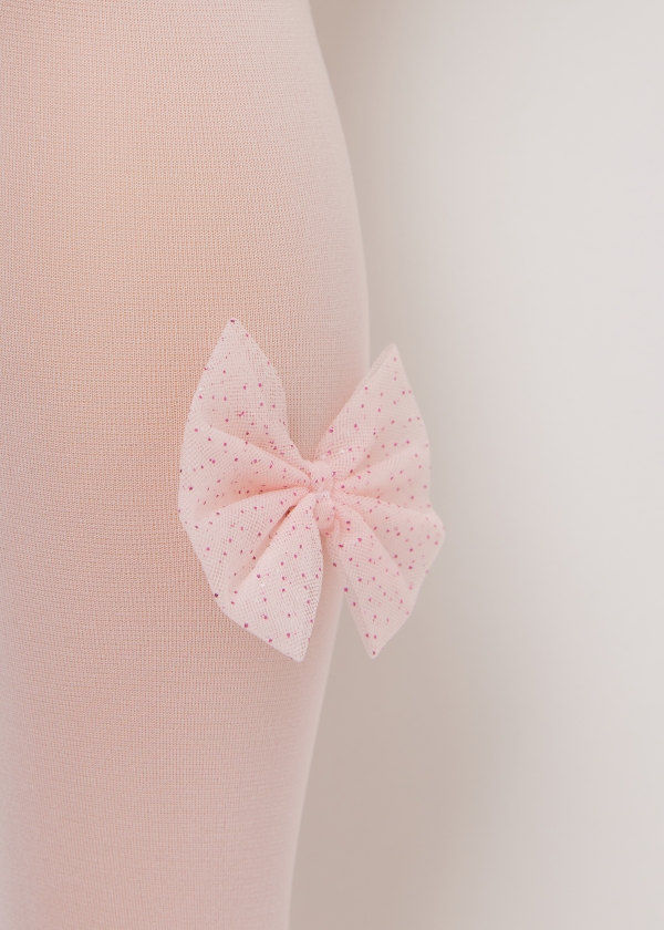Плотные колготки для девочек. На уровне щиколотки элегантный бантик из тюля с блестками. Плотность 30 ден.