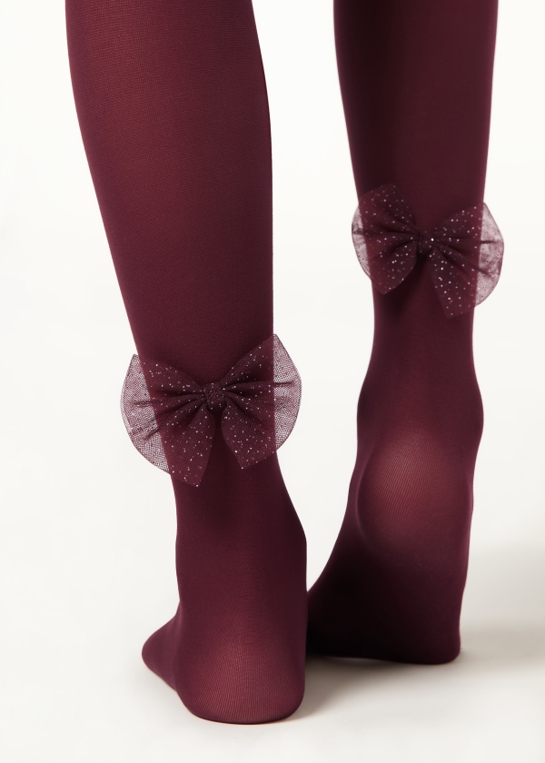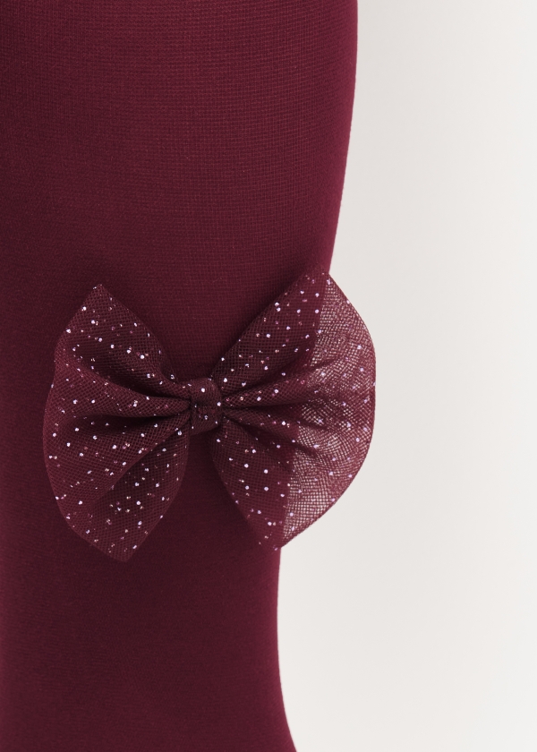 Плотные колготки для девочек. На уровне щиколотки элегантный бантик из тюля с блестками. Плотность 30 ден.