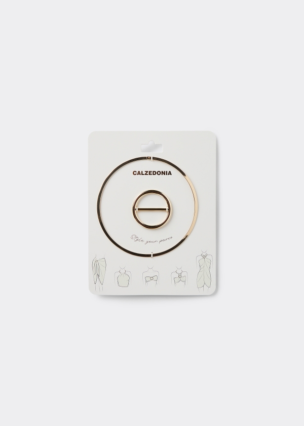 Набор колец для парео предлагает множество универсальных и оригинальных решений для создания эксклюзивного образа. С помощью элегантного кольца-ожерелья парео можно изящно закрепить на шее, а с помощью практичного кольца-пряжки — на талии или на груди.