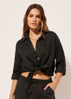 Короткая рубашка изо льна — идеальная одежда для тех, кто любит натуральные материалы. Модель с отложным воротником, длинными рукавами и пуговичной застежкой.