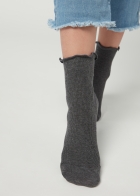 Короткие женские носки из хлопка в резинку. В ассортименте представлены модели с различными рисунками.