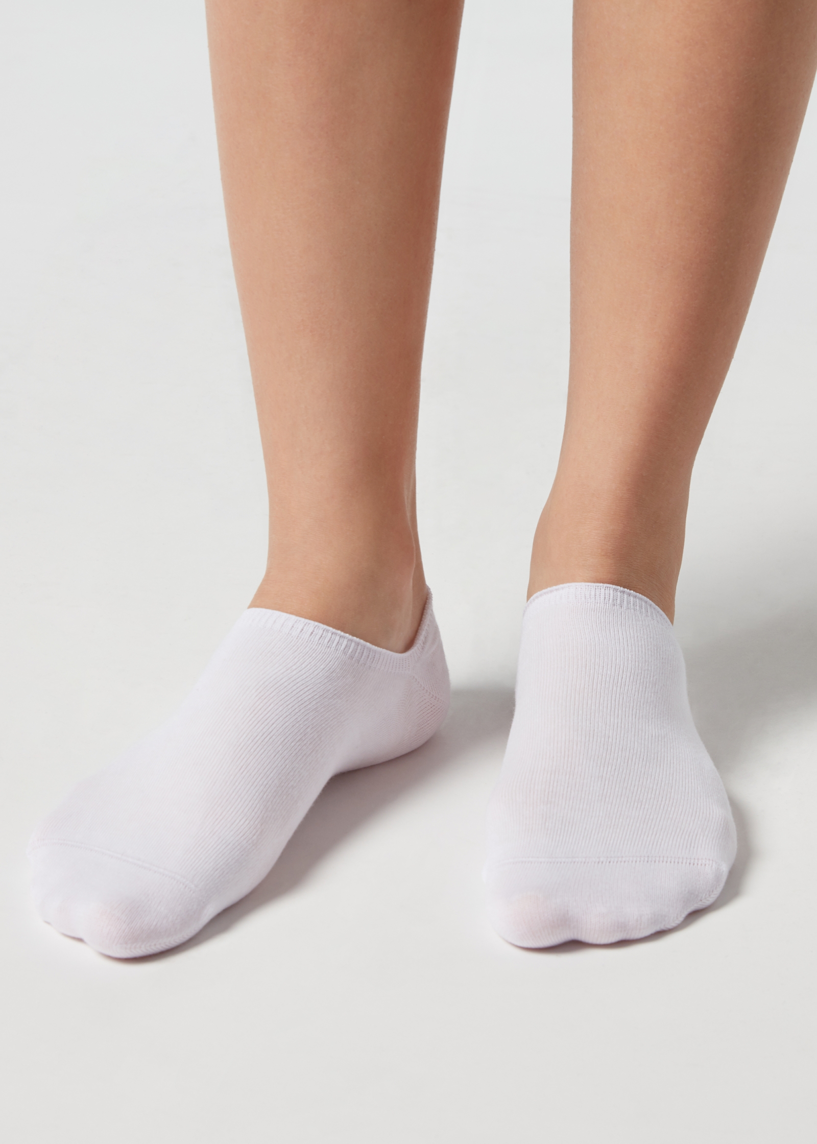 Короткие хлопковые носки унисекс с небольшими вырезами по бокам. Модель облегает стопу и плотно держится на пятке благодаря силиконовым полоскам.