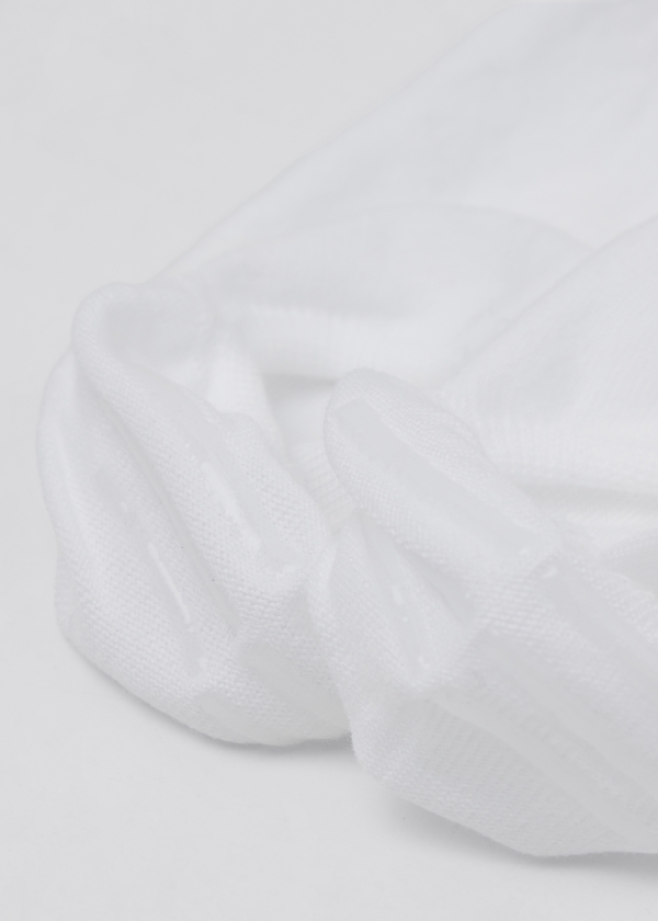 Короткие хлопковые носки унисекс с небольшими вырезами по бокам. Модель облегает стопу и плотно держится на пятке благодаря силиконовым полоскам.