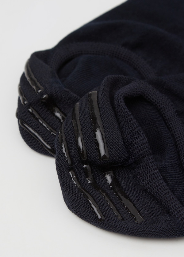 Короткие хлопковые носки унисекс с небольшими вырезами по бокам. Модель облегает стопу и плотно держится на пятке благодаря силиконовым полоскам.
