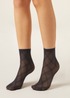 Короткие женские сетчатые носки с рисунком в виде ромбов. Плотность 50 ден. Экологичное волокно Q-Nova, из которого изготовлено это изделие, производят из регенерированного сырья с низким воздействием на окружающую среду.