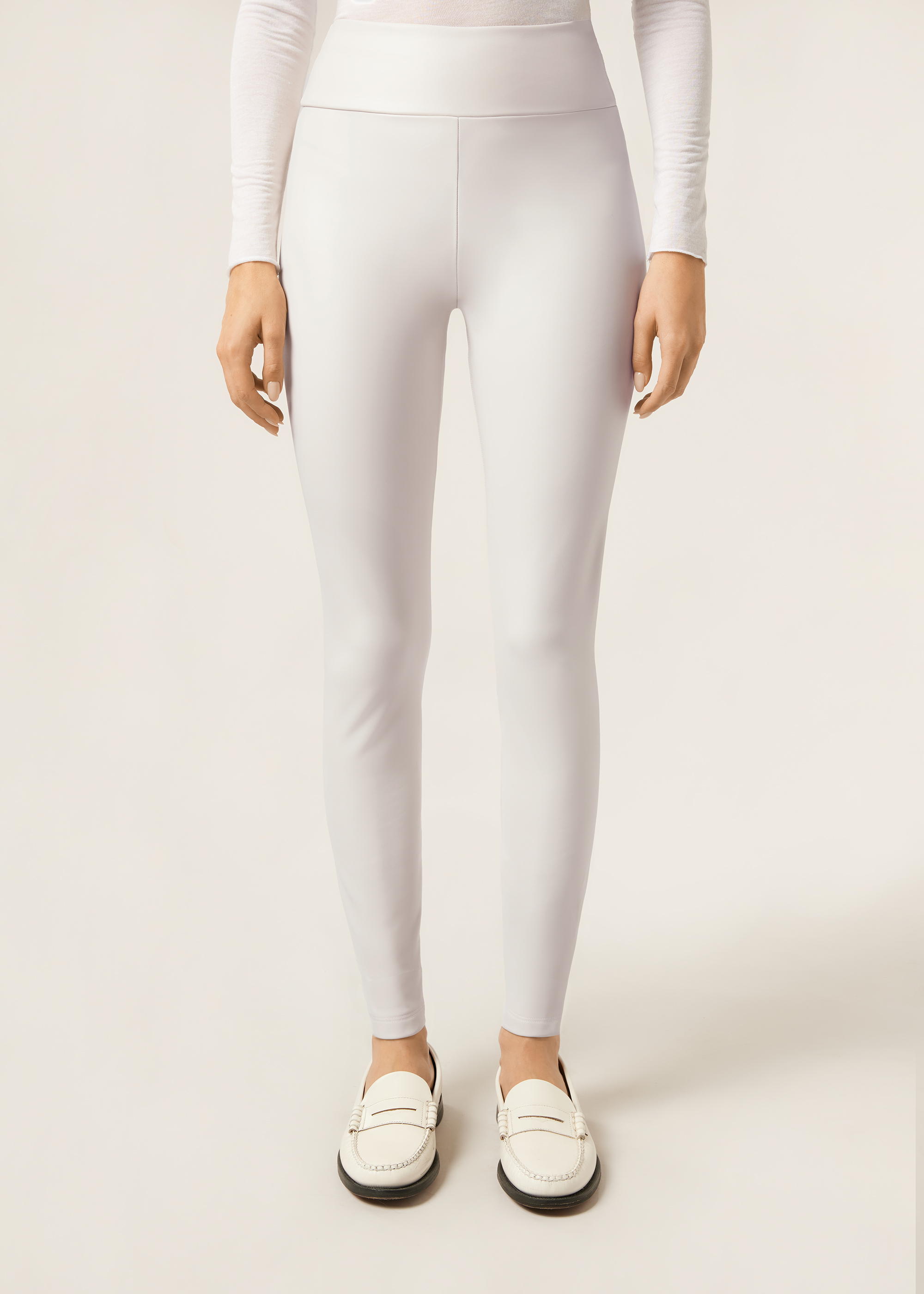 - Леггинсы с имитацией кожи - Широкий мягкий пояс - Обладают теплозащитными свойствами - С флисом во внутренней части