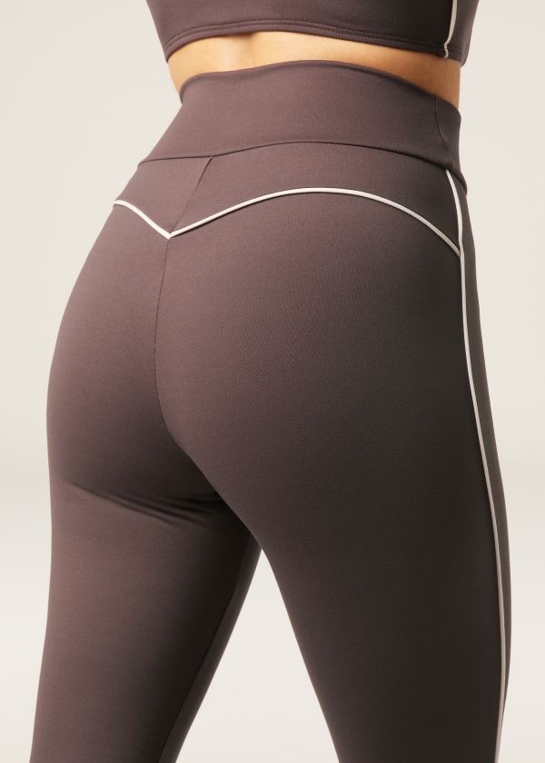 Удобные легинсы, не стесняющие движений, из очень мягкой и эластичной ткани Soft Touch. Высокий пояс без резинки плотно облегает фигуру. Отделка кантом придает образу женственные нотки, повторяя линии силуэта сзади и по бокам и подчеркивая ягодицы деталью в форме сердца. Сочетание элегантности, комфорта и свободы движений, эти легинсы — идеальный вариант для занятий спортом.
