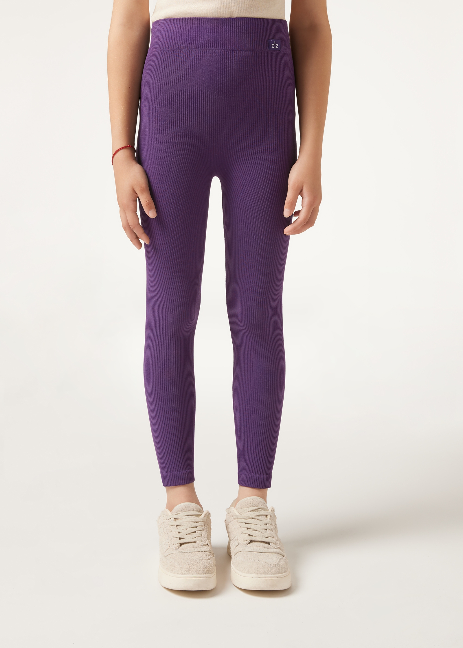 Бесшовные легинсы в мелкий рубчик для девочек. Удобная модель из очень мягкой и плотной эластичной ткани. Комфортный пояс. Легинсы подходят для спортивных занятий.