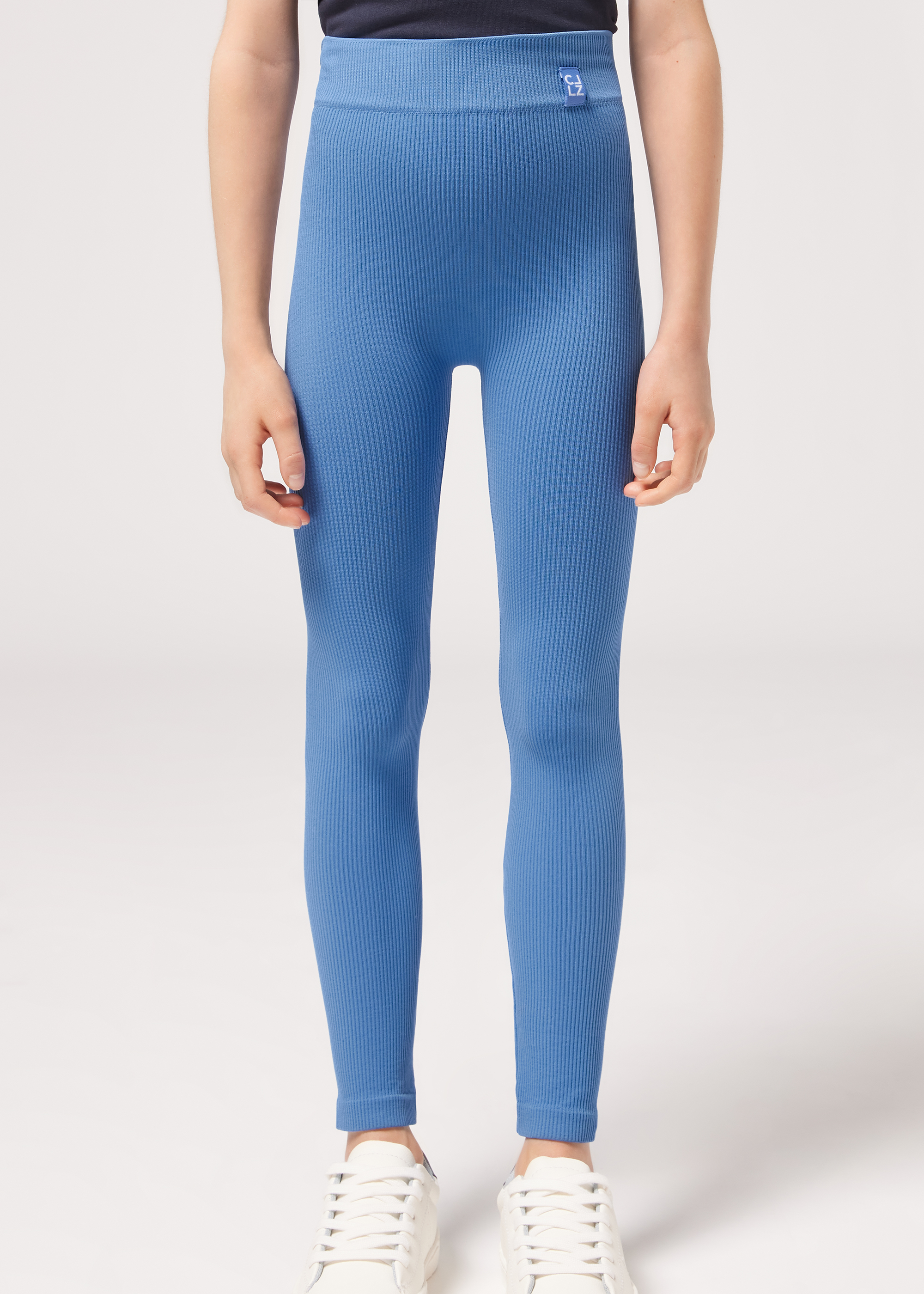 Бесшовные легинсы в мелкий рубчик для девочек. Удобная модель из очень мягкой и плотной эластичной ткани. Комфортный пояс. Легинсы подходят для спортивных занятий.