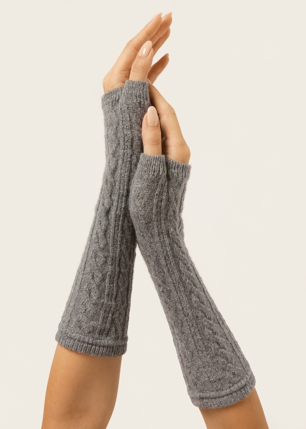 Теплые и плотные женские митенки с узором «косичка» и добавлением кашемира — идеальное сочетание изысканности, мягкости и комфорта.