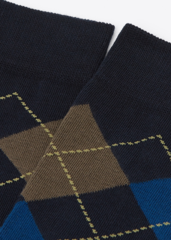 Мужские короткие носки из хлопка. Удобная и прочная модель с классическим узором. Мягкие резинки обеспечивают идеальную посадку.