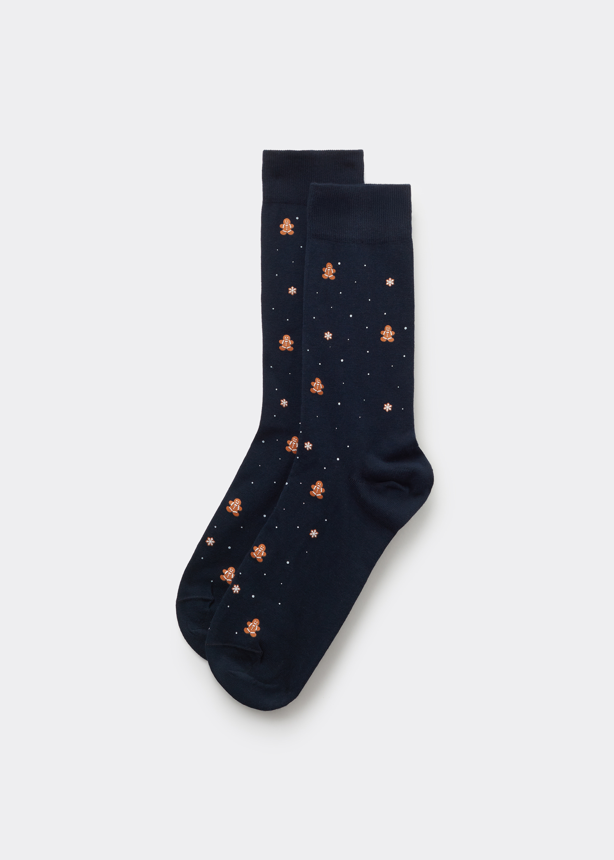 Мужские носки из мягкого хлопка с новогодним рисунком. Удобные и дышащие, они идеально подходят для праздничных дней.