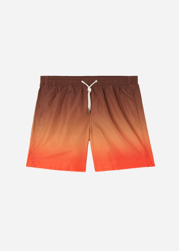 Мужские плавки-шорты из ткани с принтом. Пояс с резинкой внутри. Кулиска с контрастным шнурком и цветным эглетом. Длина до середины бедра. Боковые карманы. Внутри сетка. Сзади накладной карман.