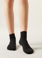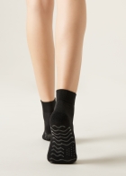Мягкие женские носки классической длины. Противоскользящее силиконовое покрытие на стопе. Благодаря усиленным мыску и пятке эта модель отличается повышенной прочностью и комфортом.