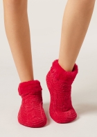 Красные нескользящие носки Soft из новогодней коллекции. Мягкая и теплая пряжа этой двухслойной модели окутывает вас уютом и комфортом, а противоскользящее покрытие в зоне стопы обеспечивает устойчивость и безопасность при ходьбе — идеальные носки для отдыха дома.